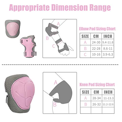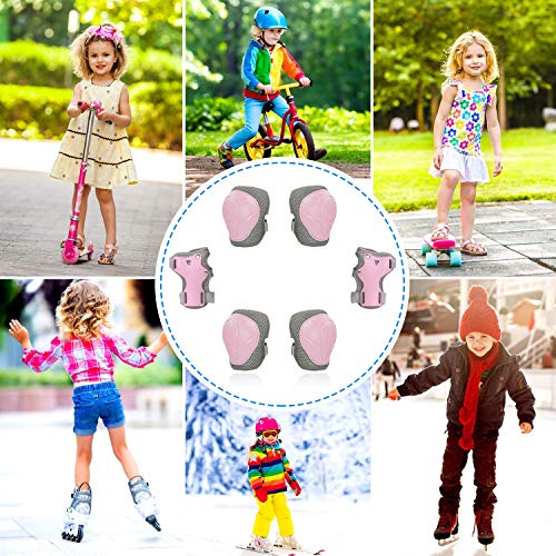 LANOVAGEAR Protezione Set per Bambini 2-8 Anni Regolabili Gomitiere Ginocchiere e Polsiere Set per Biciclette, Skateboard, Scooter, Pattinaggio, Arrampicata (Rosa, S)