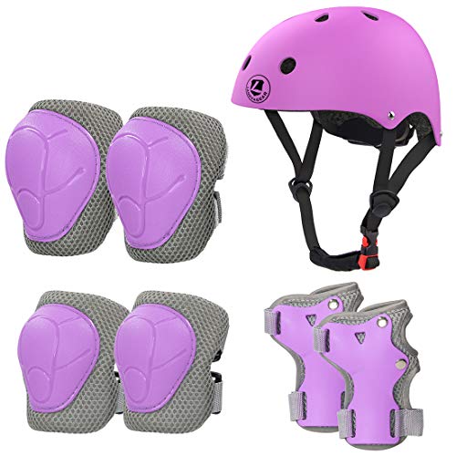 LANOVAGEAR Protezione di Casco Bambini, Ginocchiere Gomitiere e Protezione Polso per Pattini a Rotella,Skateboard, Bicicletta, Monopattino e Altri Sport Estremi (2-8Anni) (Viola, S)