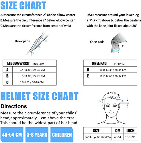 【Fascia elastica regolabile】Il casco ha una fascia elastica regolabile,la tracolla,le ginocchiere e i gomiti sono sigillati con velcro. È adatta a bambini di età diverse e può essere utilizzata da ragazzi e ragazze.