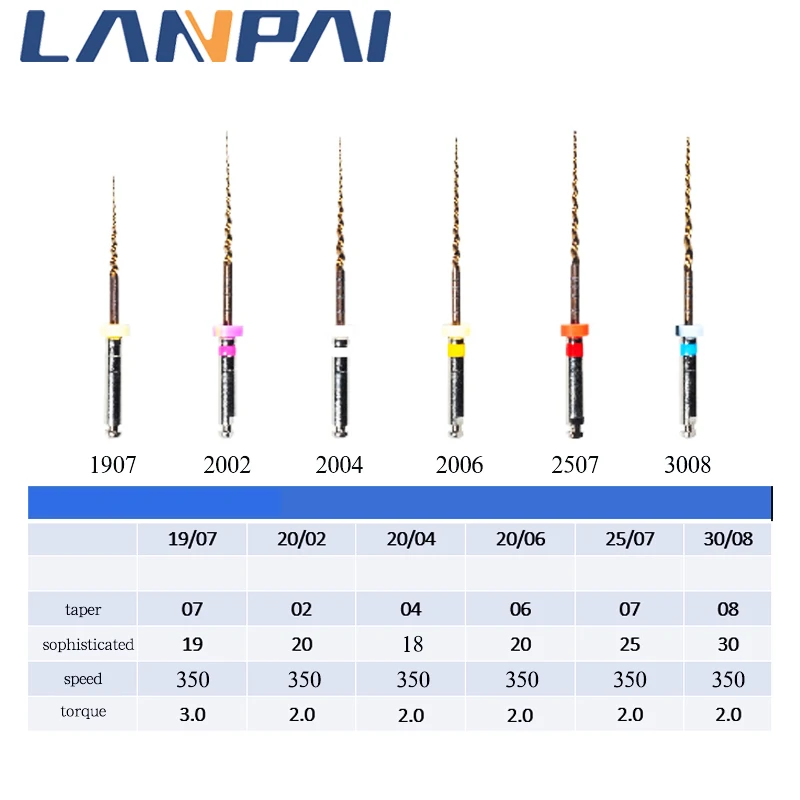 Lanpai 6Pcs/Box Dental Flexible Heat Activated Root Canal Files Gold Label Nickel TitaniumFor Machine