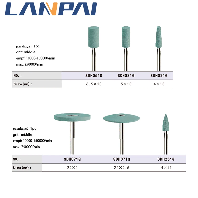 Lanpai 1Pcs Lab Dental Diamond Grinding Head Stone Grinder Zirconia Quick Polishing Ceramics Emax Crowns Polisher