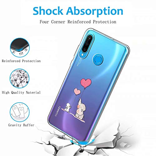 Lanpangzi Compatibile con Custodia Huawei P30 Cover + 5D Pellicola Vetro Temperato Tecnologia TPU Silicone Trasparente Slim Cover Anti Graffio Protettiva Case - Elefante e Coniglio