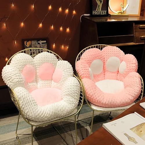 LANPEW Simpatico cuscino per bambini con zampe di gatto, comodo cuscino da balcone con rivestimento in peluche per sedersi e giocare (60 x 60 cm, bolla bianca)