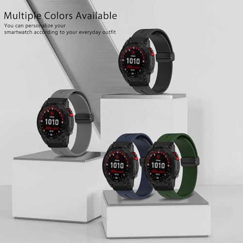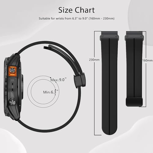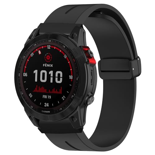 LanQii 26mm QuickFit Cinturino Compatibile con Garmin Fenix 7X Pro Solar/Fenix 7X/6X/5X/Fenix 6X Pro, Silicone Morbido Magnetici Sportivo Cinturini di Ricambio per Descent Mk2/MK1/Tactix Delta -Nero