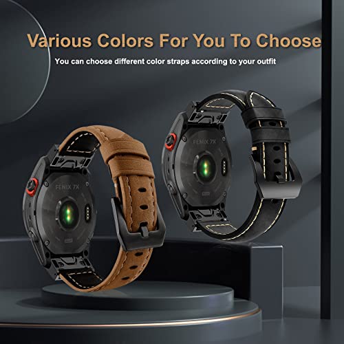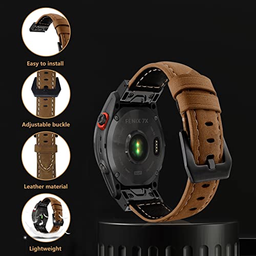 LanQii 26mm QuickFit Cinturino in Pelle Compatibile con Garmin Fenix 7X Pro Solar/Fenix 7X/Fenix 6X/5X/Fenix 6X Pro/Fenix 5X Plus, Braccialetto Vera Pelle Uomo Donna per Garmin Descent Mk2/MK1 Marrone