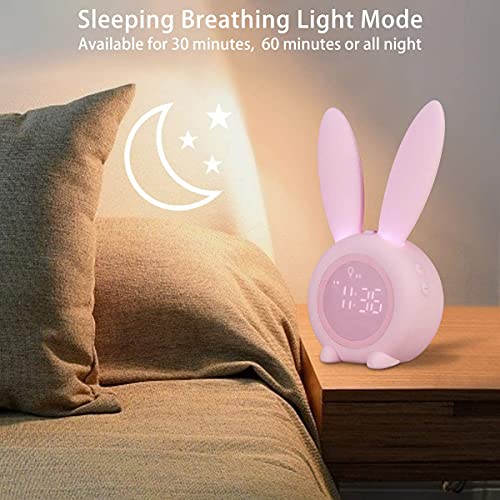 LANREAYOU Sveglia Sveglia Del Coniglio Lampada Da Tavolo Creativa Da Tavolo Lampada Da Comodino, Funzione Snooze, 6 Suoni Forti, Luce Notturna Temporizzata Ideale Per Bambini, Ragazze, Neonati