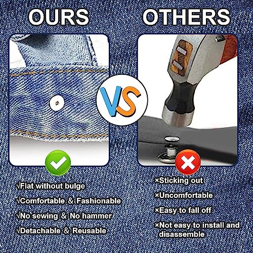 【Nessuna cucitura, facile da installare】I bottoni a perno di jeans sono facili da sostituire e installare, non sono necessari cucito o altri strumenti, devi solo inserire il bottone nella posizione appropriata dei vestiti o dei pantaloni, quindi utilizzare il cacciavite incluso per stringere o allentare il perno filettato, il bottone può essere facilmente sostituito in pochi secondi, Risparmia molto tempo e fatica.