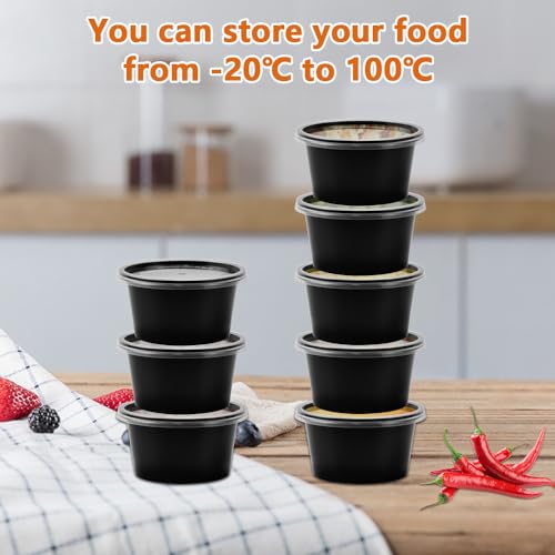 LANSKYLAN 50 Pezzi Piccoli Contenitori con Coperchio 100 ml Vasetti di Plastica con Coperchio trasparente Barattoli per Alimenti Contenitori Piccoli per Alimenti per Salse Zuppe Condimenti e DIY, Nero