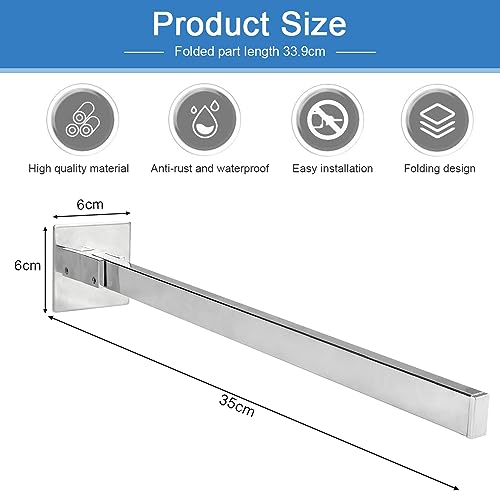 【Materiale in acciaio inossidabile 304 di alta qualità】Questo portasciugamani a parete è realizzato in acciaio inossidabile 304 di alta qualità, che ha un'eccellente resistenza alla corrosione, durata e non è facile da arrugginire, il che può garantire una lunga durata del portasciugamani pieghevole. Il materiale in acciaio inossidabile è anche resistente al vapore acqueo e all'umidità, garantendo che il portasciugamani possa essere utilizzato a lungo senza arrugginire.