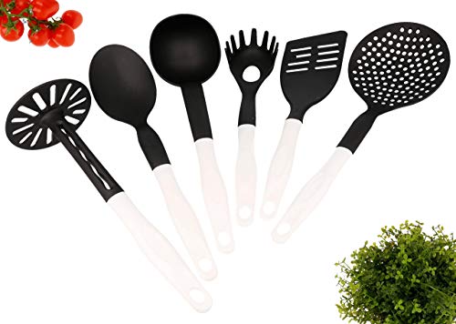 Lantelme - Set di Attrezzi da Cucina, 6 pz, Colore: Bianco e Nero, termoresistenti Fino a 260 Gradi, in plastica