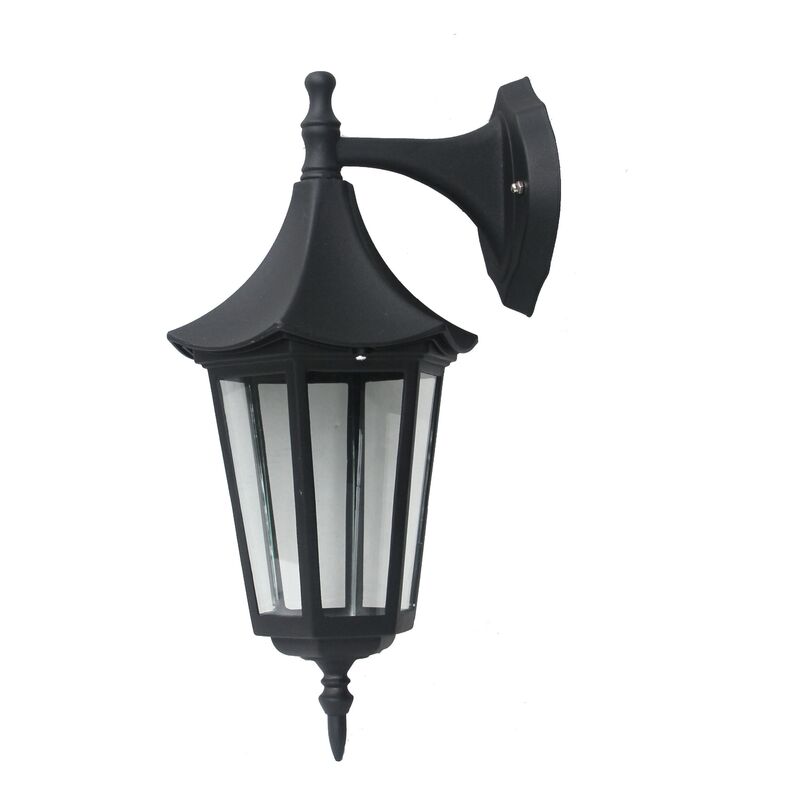 Lampada era down da esterno nera corpo in leda di alluminio, schermo di protezione in vetro, con 6 facce. Ideale per illuminazione di giardini e aree verdi. Attacco E27 MAX 60W - IP44 Dimensioni cm. P. 20.9 x H. 39