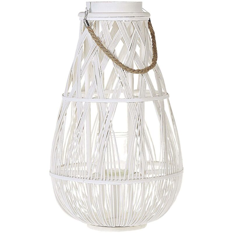 Lanterna accentuata dalla forma originale. Una lanterna intrecciata in legno naturale, progettata per portare un piacevole ambiente estivo in qualsiasi zona giorno. Realizzata con una maniglia speciale per poterla postare in qualsiasi momento, può essere posizionata anche su un gancio per creare un arredamento speciale, illuminando la stanza oppure appoggiata su un mobile per creare una luce leggera ed accattivante. Dettagli: Tipo di prodotto: Lanterna Stile: Rustico Colore principale: Bianco Tipo di materiale: Legno massiccio Materiale principale: Legno di bambù Materiale secondario: Vetro Forma: Ovale Realizzato a mano: Sì Dimensioni: Profondità: 34 cm Larghezza: 34 cm Altezza: 56 cm Peso: 1 kg L'offerta include: 1 x Lanterna Caratteristiche chiave: Pratica maniglia, Adatto a ogni stile di decorazione d'interni, Arredo decorativo e funzionale, Sia per interno che esterno, Materiali di alta qualità, durevoli e facili da pulire Guida al montaggio: Non richiesto Informazioni
