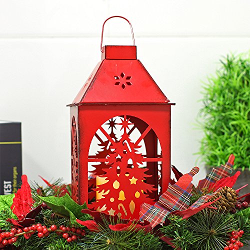 Lanterna di carta con scalda candela LED con timer, funzionamento a batteria per Natale Inverno casa decorazione, Albero di Natale, colore: rosso Red