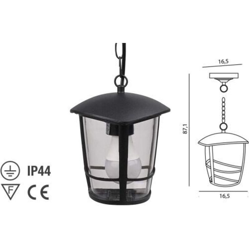 LANTERNA TIPO SOSPENSIONE COZY Lanterna a catena, IP43 - alluminio pressofuso - diffusori in plastica, portalampada E27 in porcellana - accessori di montaggio inclusi. Colore nero. Lampada esclusa. Dimensioni: CM. 16,5 X H 87,1