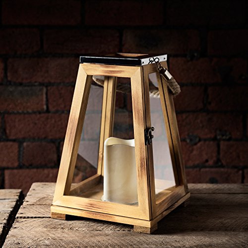 Lanterna in legno Brixham in forma trapezoidale con LED candela 30,5 cm Lights4fun