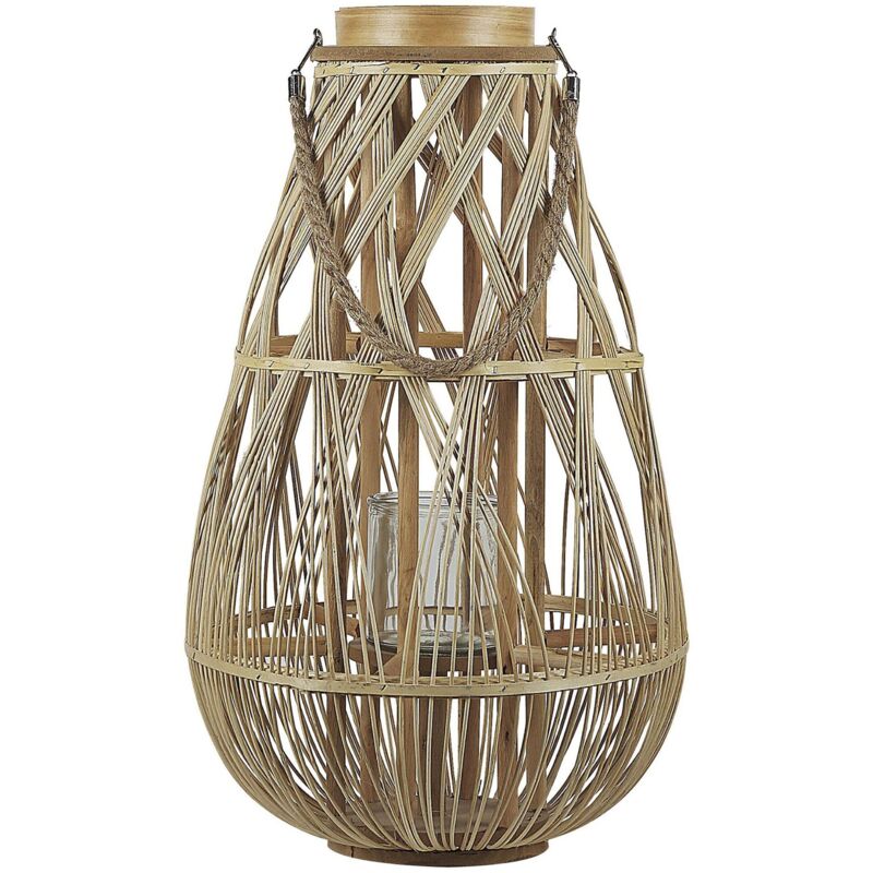 Lanterna accentuata dalla forma originale. Una lanterna dal design intrecciato realizzata in legno, perfetta per donare un feeling estivo a ogni zona living. Grazie alla comoda maniglia può essere facilmente posizionata su una superficie o essere appesa a qualunque parete risultando uno splendido accessorio. La lanterna risulta particolarmente interessante quando accoppiata a delle candele o luci LED. Dettagli: Tipo di prodotto: Lanterna Stile: Rustico Colore principale: Legno chiaro Tipo di materiale: Legno massiccio Materiale principale: Legno di bambù Materiale secondario: Vetro Forma: Ovale Realizzato a mano: Sì Dimensioni: Profondità: 34 cm Larghezza: 34 cm Altezza: 56 cm Peso: 1 kg L'offerta include: 1 x Lanterna Caratteristiche chiave: Pratica maniglia, Adatto a ogni stile di decorazione d'interni, Arredo decorativo e funzionale, Sia per interno che esterno, Materiali di alta qualità, durevoli e facili da pulire Guida al montaggio: Non richiesto Informazioni aggiuntive: Le
