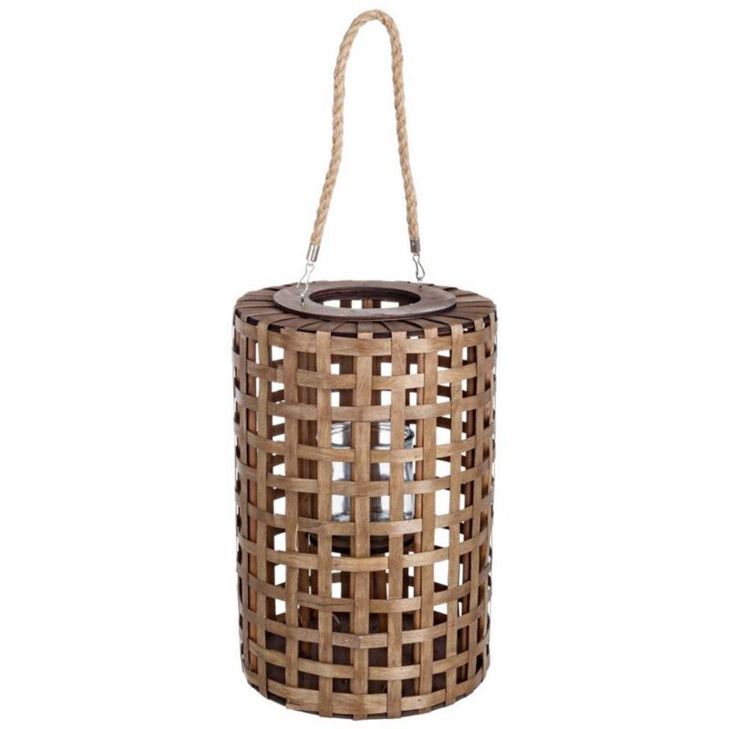 Lanterna Thai del brand Bizzotto in Legno di pioppo e vetro e manici in iuta. Le foto sono a scopo illustrativo e potrebbero essere differenti rispetto al prodotto venduto. H. 40,0 cm - Ø26