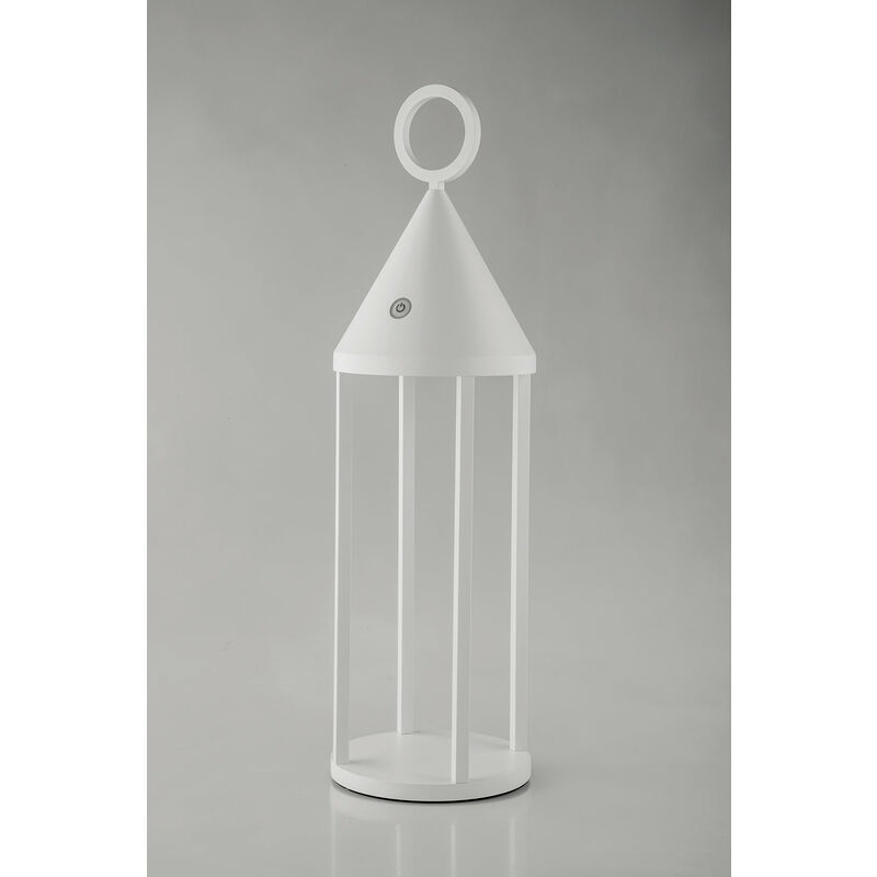 Lanterna led NORMAN bianco • completamente realizzata in metallo verniciato bianco opaco • base in metallo verniciato bianco opaco • lampada led non sostituibile • led integrato incluso • watt 2,2, lumen 168, kelvin 3000, 54 IP • dimensioni cm. L15,10 P.15,10 H.51
