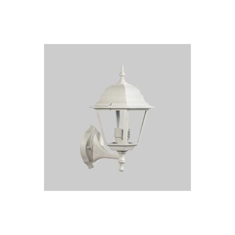 Struttura in pressofusione di alluminio, trattamento anticorrosivo, verniciatura a polveri epossidiche. Diffusori in vetro. Portalampade E27. Alimentazione max 60W. Grado di protezione IP44. Dimensioni mm.150x195x330h. Lanterna da parete 'eolo up b' colore bianco Illuminazione per esterno alogena