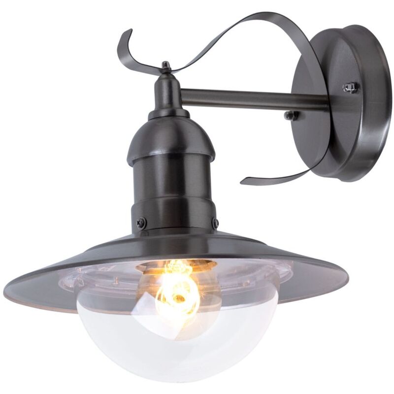 Descrizione Applique da esterno stile country. Questa luce illumina in modo ottimale l'area prescelta. Sul balcone, sulla terrazza o accanto alla porta d'ingresso, questa applique fa una bella figura ovunque. La lampadina può essere regolata utilizzando uno speciale interruttore a parete (non incluso). dettagli apparecchio • Tipo di apparecchio: Lampada da parete • Materiale: Acciaio inossidabile • Paralume: Policarbonato • Grado di protezione: IP44 • Larghezza x altezza x profondità in cm: 24 x 25,6 x 27,2 • Attacco: 1x E27 • Lampadina inclusa: Sì • Potenza lampadina: 1x 4 watt• Flusso luminoso: 1x 350 lumen• Colore luce: bianco caldo • Alimentazione: 220-240V, 50 -60Hz Dettagli Lampadina • Tipo di lampadina: LED • Attacco: E27 • Materiale: Vetro • Colore: Trasparente • Flusso luminoso: 350 lm ( Lumen) • Consumo energetico: 4 kWh/1000h • Temperatura colore: 2700 K (Kelvin) • Colore luce: bianco caldo • Resa cromatica (Ra): 80 • Consumo energetico nominale: 4 W (Watt ) • Intensità