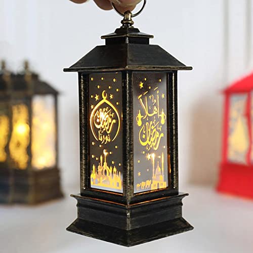 Lanterna del Ramadan, Lanterna Sospesa del Ramadan, Lampade Decorative del Ramadan di Eid Mubarak Musulmano dell'Islam,Luce Notturna a LED in Vetro di Legno per la Decorazione della Parete del Cortile