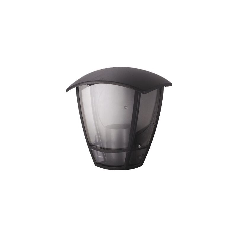 Corpo in alluminio pressofuso colore nero, schermo di protezione in policarbonato trasparente a 3 facce, attacco e27. certificazioni ip44. dimensioni 16x16xh19 cm.