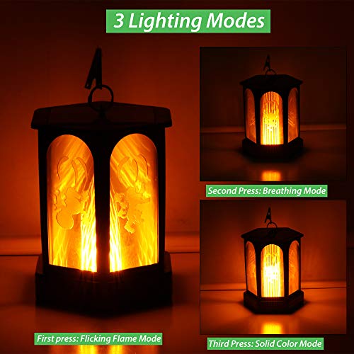 Lanterna Solare Luci Danza Fiamma Impermeabile, Qoolife Lanterne da esterno pensili per patio Lampade da parete Luci paesaggistiche 96 LED Dusk to Dawn Auto On/Off Luce di sicurezza esterna Percorso