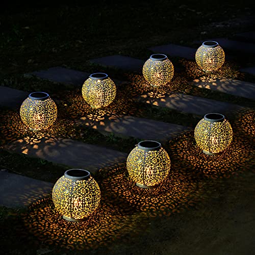 Lanterne decorative: questa lanterna solare bianca emana una splendida luce calda di notte e il motivo sul pavimento sembra accattivante e raffinato, è una grande nota decorativa per giardini, vialetti, balconi, terrazze, prati e cortili.