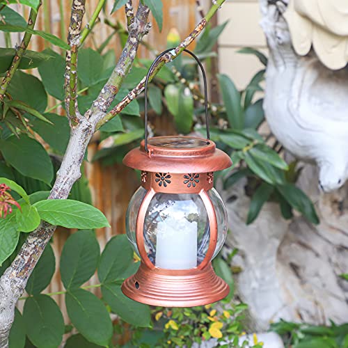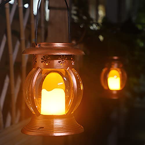 Lanterna Solare Esterno, ANTING Lampada da Giardino Sospesa Luci Solari Esterno Effetto Candela Senza Fiamma IP44 Impermeabile LED Lanterna Decorativo per Patio Cortile Parco Prato Terrazza
