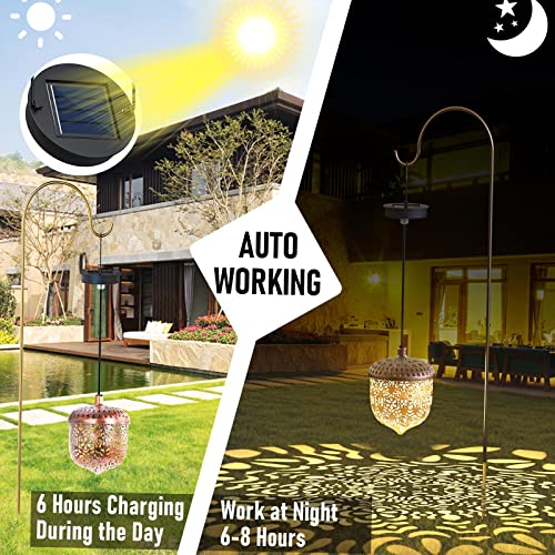 【Ampia applicazione e design unico】 La luce della lanterna solare è progettata con una speciale forma a pigna e un motivo a rose, che è una luce decorativa perfetta e crea un'atmosfera romantica con le sue belle immagini. È ampiamente utilizzato per il corridoio di nozze all'aperto e ideale per il vostro patio, portico, spazio esterno, feste, festival.