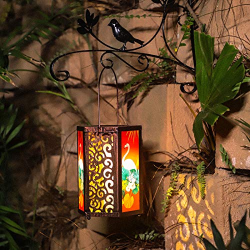 【Stile Retrò Marocchino】: La finitura in rame rosso antico lo rende più unico in senso estetico. Il motivo dipinto a fenicottero sulla superficie della lanterna ha un forte stile marocchino. È dotato di ganci resistenti, quindi non solo puoi metterlo sul desktop, ma anche appenderlo dove vuoi. La migliore decorazione per esterni per terrazze, giardini o marciapiedi!