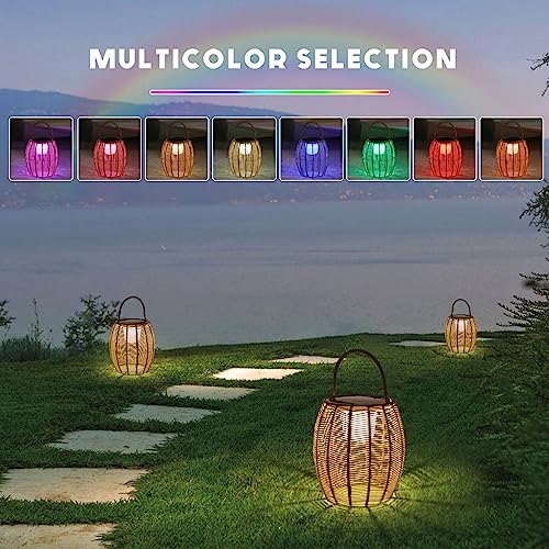 Lanterna Solare Da Esterno Rattan Ricaricabile USB Dimmerabile Colore RGB,Lanterne Solari Da Esterno In Rattan Lanterne Da Giardino A Luce Solare con Telecomando Per Alberi Terrazzo