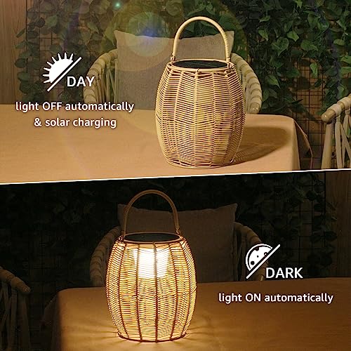 ◆ 【Alimentazione solare e ricarica USB】: la lanterna solari da esterno in rattan ha 2 metodi di ricarica. Può essere caricato dalla luce solare, la ricarica solare richiede 8-11 ore;