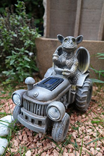 Lanterna solare da giardino con figura di cucciolo di drago su un trattore