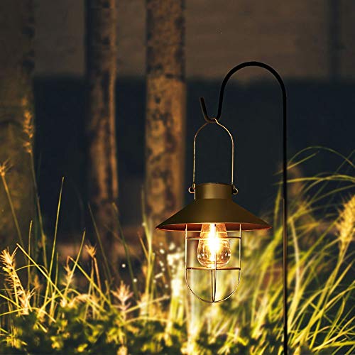 【Lanterna solare esterna aggiornata del 2020】 Design tradizionale in stile marinaro + lampadina LED Edison calda. Questa lanterna solare può essere appesa ovunque tu voglia, perfetta per giardino, cortile, patio, veranda, muro, sentiero, vialetto, prato, campeggio, alberi, pergolati, ecc. Dimensioni: Retro lanterna (7,1 x 7,1 x 7,7 pollici) / gancio da pastore (81cm/31,5 pollici di altezza).