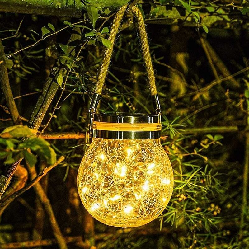 Accendi e spegni automaticamente: 1 globo per confezione, accendi prima l'interruttore, quando ricevi questo globo. Il pannello solare si carica durante il giorno e accende automaticamente la luce di notte, spegne la luce di giorno. Richiede solo 6-8 ore per essere completamente caricato e può durare per 8-10 ore di lavoro. PS: assicurati di esporlo al sole per 6-8 ore per caricarlo completamente prima di usarlo.^ Design con LED bianco caldo. Il riflesso del motivo è abbastanza bello da creare un'atmosfera romantica.^ Risparmio energetico e facile da usare: non richiede alimentazione aggiuntiva, risparmia sui costi elettrici. La batteria integrata è 1,2 V 600 MAH, dimensioni: 4,9 pollici di diametro x 5,7 pollici di altezza. Le luci solari sospese sono realizzate in globo di vetro craquelé, robusto acciaio inossidabile, corda resistente. Basta accendere l'interruttore, AVVITARE bene il coperchio e quindi appendere la lampada in un luogo in cui possa assorbire la luce solare diretta.