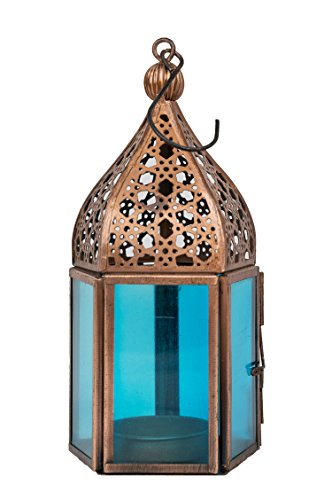 Lanterna a vento, lanterna da giardino, lanterna in ferro, orientale, marocchino, Arabo Mediterraneo, Marocco - Meena Blu 16cm - per le candele