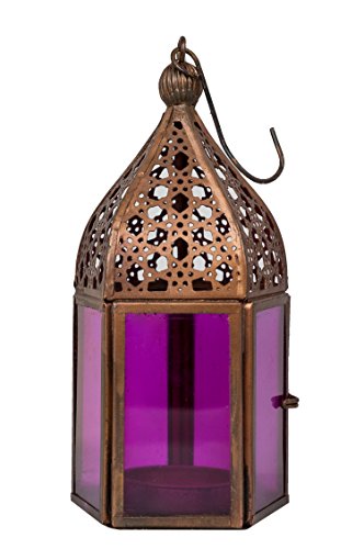 Lanterna a Vento, Lanterna da Giardino, Lanterna in Ferro, Orientale, Marocchino, Arabo Mediterraneo, Marocco - Meena Rosa 16cm - per Le Candele