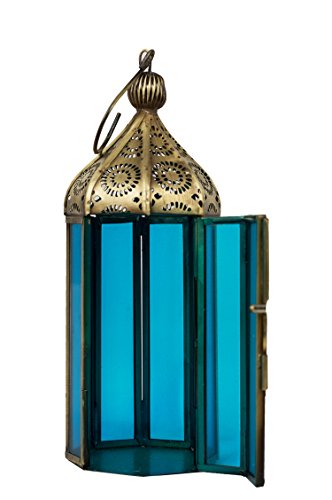 Lanterna a vento, lanterna da giardino, lanterna in ferro, orientale, marocchino, Arabo Mediterraneo, Marocco - Jayanti Blu 19cm - per le candele