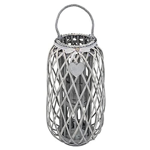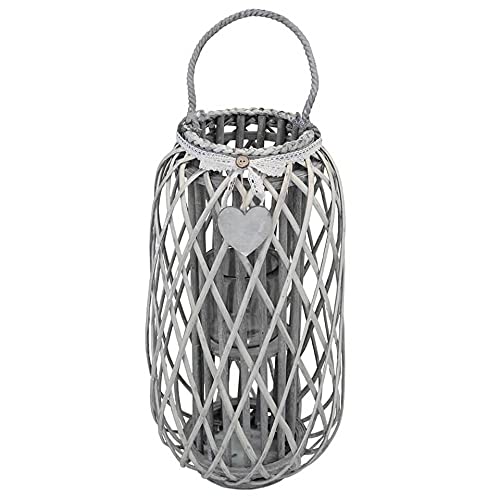 Lanterna In Vimini Grigia Diametro 31 X 66 Per Interno E Esterno, Portico, Porta Candela, Porta Fiori, Giardino Decorazioni