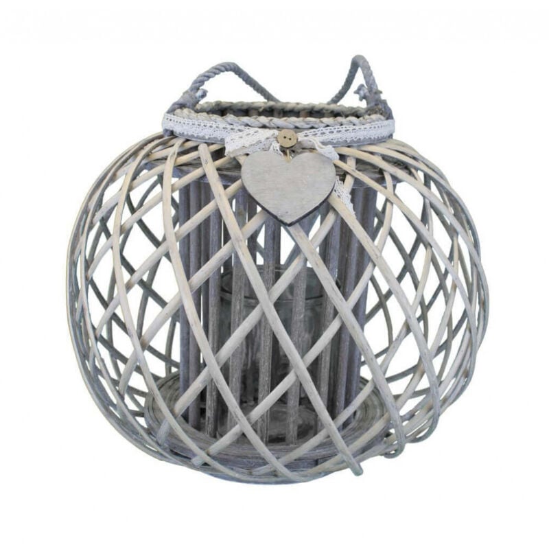 Lanterna bianca in vimini e vetro con nastro in pizzo e decoro a cuore Dimensioni: cm top ø 20 x 32 h-centrale ø 40 x 32 h-vetro ø 12,5 x 15 h Hai voglia di creare un'atmosfera elegante e raffinata nella tua casa? Vorresti arredare con uno stile ricercato che ti faccia sentire come se fossi in una villa Toscana? Beh, abbiamo esattamente quello che fa al caso tuo - MAYA, una fantastica lanterna rotonda in vimini bianco. Che sia come centrotavola sul tuo tavolo da pranzo o come soprammobile sul tuo comodino, la lanterna MAYA saprà trasformare completamente l'ambiente intorno a te. Come fa? Semplice! Basta accendere una candela all'interno e lasciare che la magia del suo caldo bagliore s'infonda nella stanza. Immagina questa scena: una serata romantica con la persona amata, seduti vicino alla finestra, mentre il candore del vimini bianco crea un'atmosfera incantevole. I giochi di luce e ombra danzano sulle pareti, avvolgendoti in un abbraccio di tranquillità e serenità. Che incanto! Ma