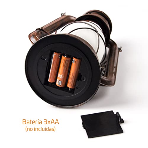 Lanterna LED vintage effetto fiamma realistica luce bianca calda 2200K alluminio effetto retrò vetro dimmerabile batterie 3x AA non incluse altezza 24 cm decorazione casa giardino