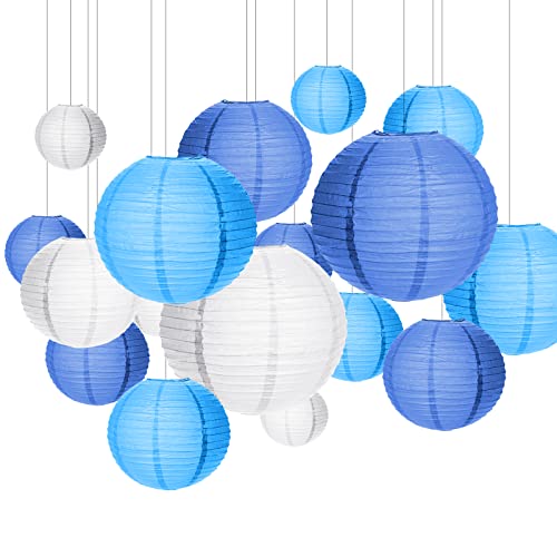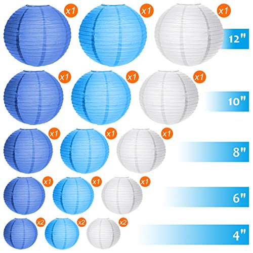 18 lanterne di carta, lanterne rotonde cinesi colorate da appendere, misure 10,2 cm/15,2 cm/20,3 cm/25,4 cm/30,5 cm da appendere per feste, giardino, celebrazioni, matrimoni (blu+bianco 18 pezzi)