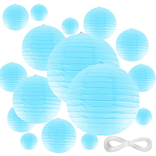 Lanterne di Carta Rotonde 21pz, Paralume di Carta, Palla di Carta Lanterna Decorazioni da Appendere, con Filo di Seta di Pesce Elastico 90 m, per Decorazione di Matrimoni, Feste (Blu)