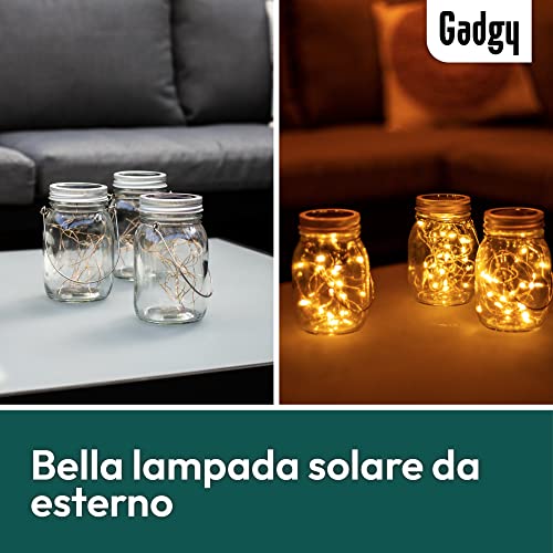 LUCE A LED: La confezione comprende 3 lampade solare con il barattoli di vetro e gancio. Ogni lampada solare in vaso di vetro da conserva è dotata di un pannello solare.