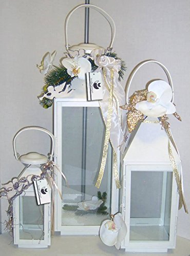 Set di lanterne in metallo, 3 pezzi, colore BIANCO, per interno o esterno, manico in similpelle - marchio LA VOLPE SPARAGNO'