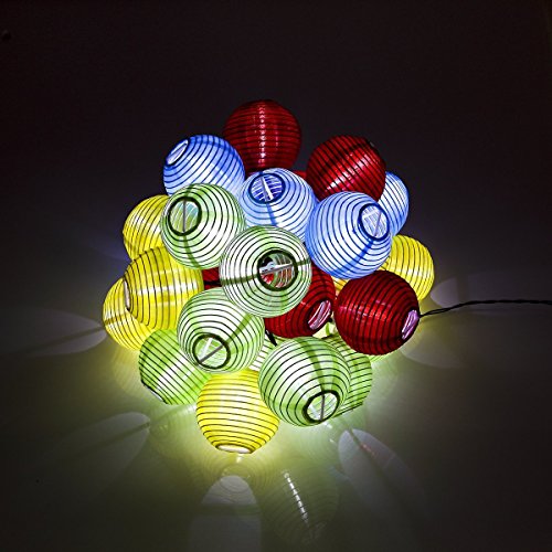 Lanterne Solari Stringa Luci, ProGreen lanterne solari esterno 30LED, 6.5m / 21.3ft, Multicolore, Lanterna cinese impermeabile da giardino, lanterne in tessuto solari da esterno per Natale, Giardino, Casa, Cortile, Bar ecc.