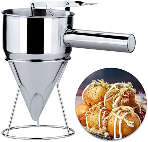 LANTRO JS Imbuto per Dolci, Imbuto per Pastella in acciaio inossidabile, Dispenser per Pancake, Imbuti in acciaio inox con rastrelliera, Imbuto per pasticceria da cucina, Utensile da Cucina
