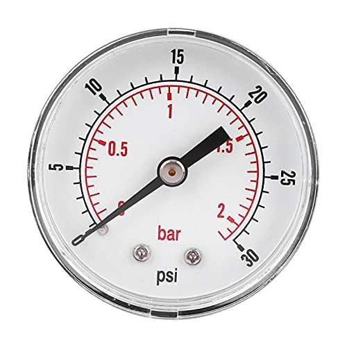 LANTRO JS Manometro Acqua Y50, Manometro Assiale ad Alta Precisione Gomme BSPT da 50 mm 1/4 di Pollice per Aria Acqua Olio Gas(0-30 psi 0-2 bar)