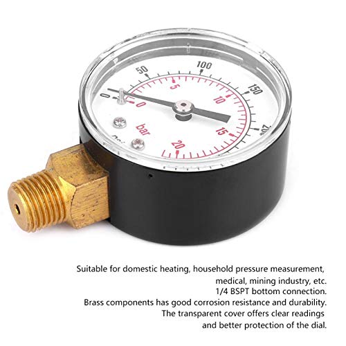FACILE LETTURA: Questo manometro ha una doppia scala per la misurazione bar / psi e il coperchio trasparente offre letture chiare